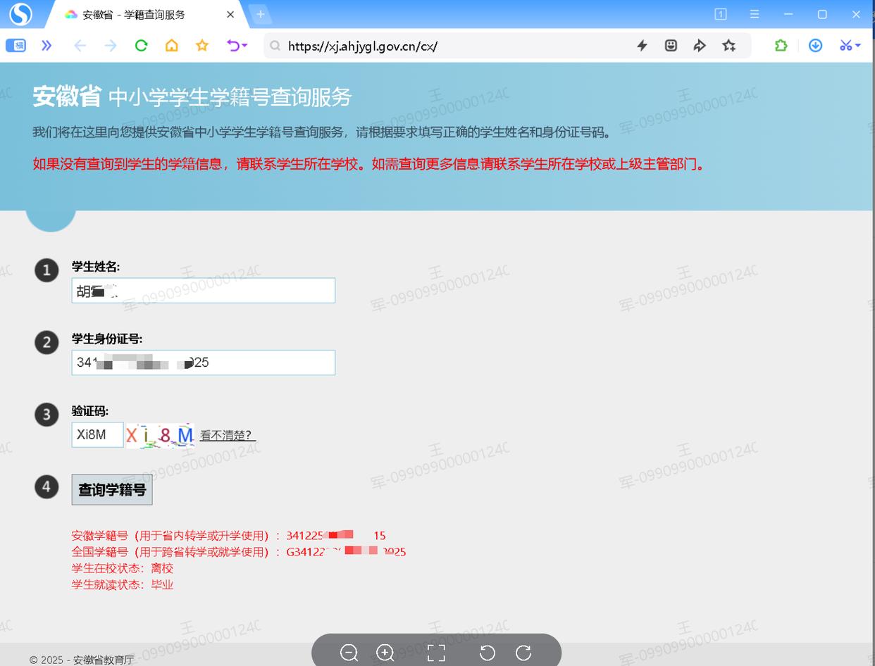以安徽为例,考生可以打开由安徽省教育厅主办的“安徽省中小学学生学籍号查询服务”系统,输入姓名、身份证号、验证码,查询结果,结果必须显示安徽学籍号、全国学籍号,学生就读状态必须为“毕业”,方可报名电大中专。