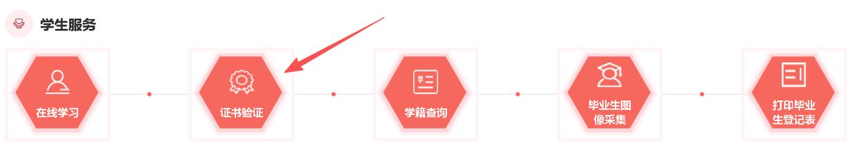 2、在“学生服务”栏目点击“证书验证”,进入学历证书在线验证系统。