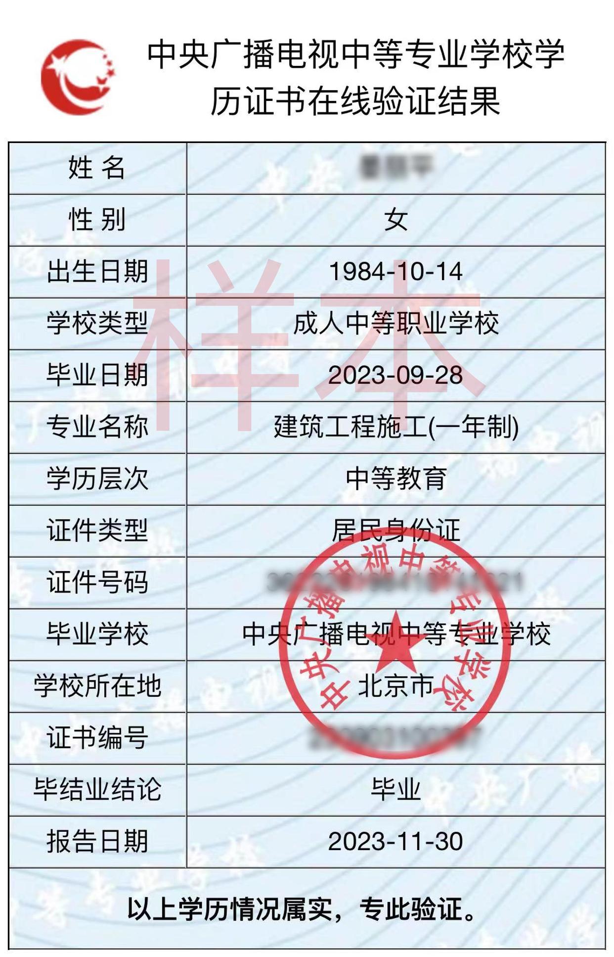 可以扫描证书二维码或通过中央广播电视中等专业学校官网查询真伪。查询方式如下: